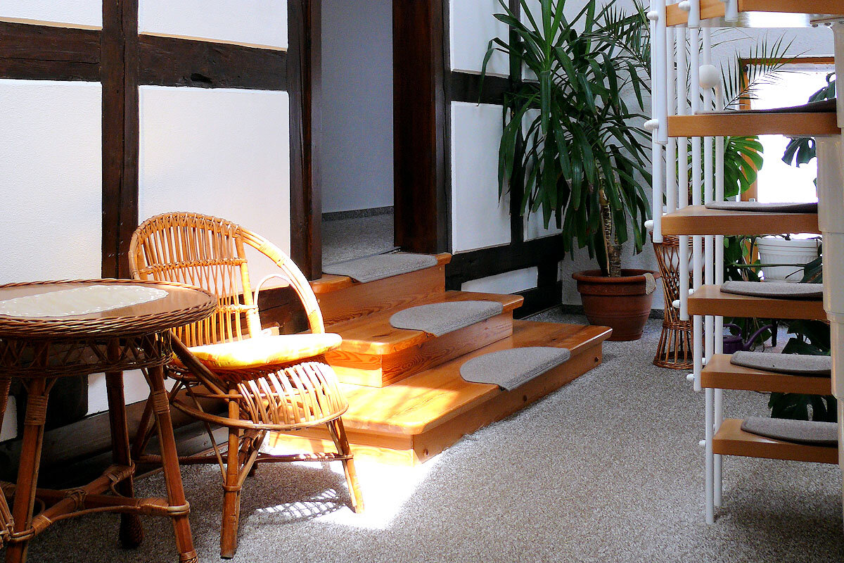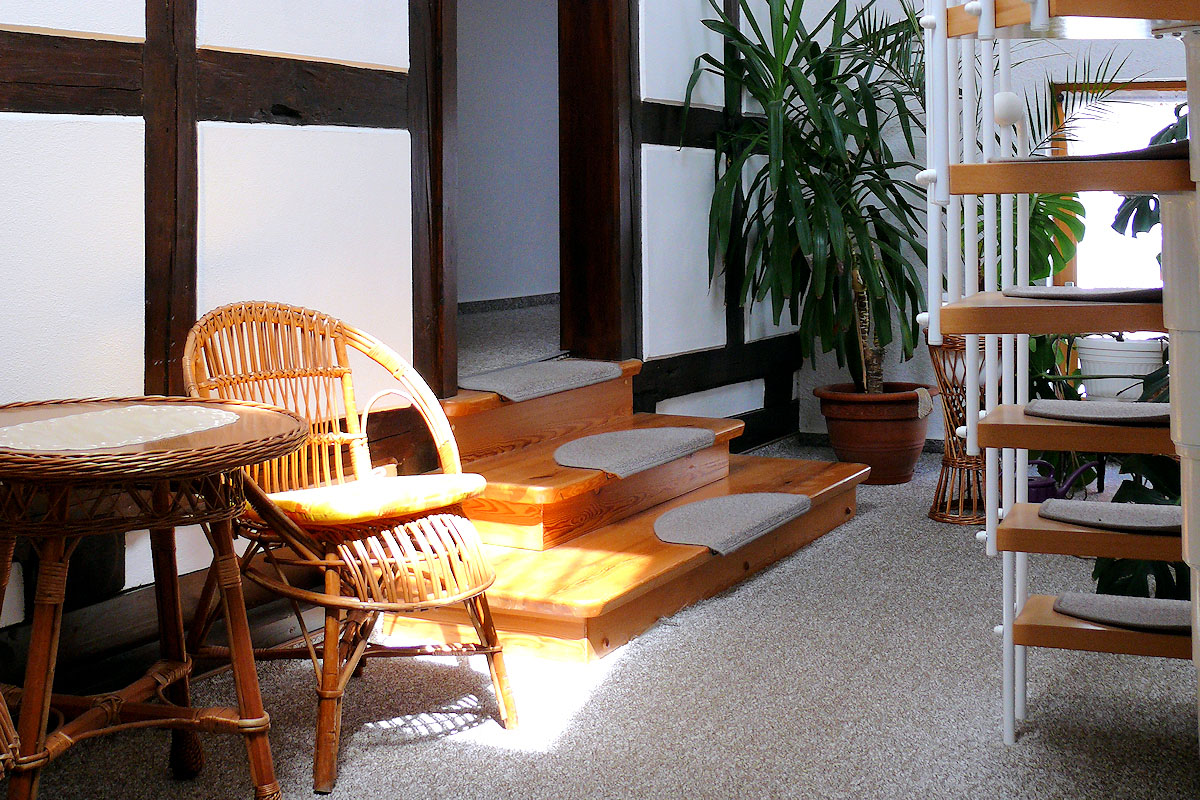 In unseren individuell eingerichteten 4 Doppelzimmern, 1 Dreibettzimmer und 2 Ferienwohnungen, sowie einem schönen separaten Aufenthaltsraum mit kleiner Tee- und Kaffeküche für gemeinsame Stunden, sollen Sie sich wohl fühlen und Entspannung finden.