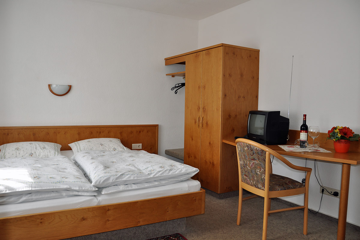 Unsere gemütlich eingerichteten Zimmer verfügen über Dusche/WC, TV und Telefon. Wir bieten Ihnen 4 Doppelzimmer, 1 Dreibettzimmer und 1 Einzelzimmer, außerdem sind Aufbettungen möglich.