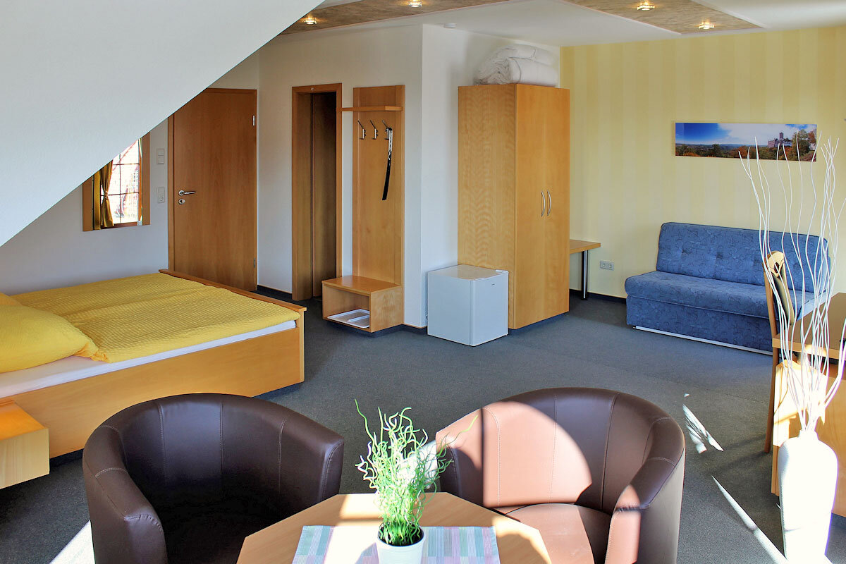 Warme Akzente in geräumigen, lichtdurchfluteten Zimmern finden Sie im Landhotel „Turmschlösschen“.