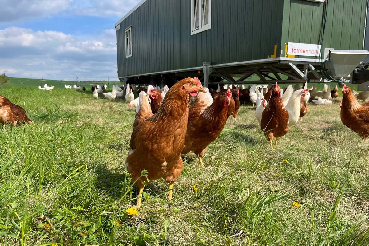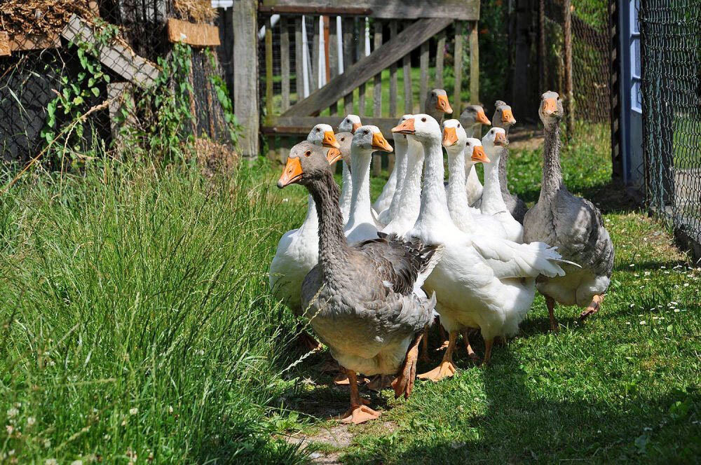 Wir betreiben weiterhin aktiv Landwirtschaft, halten 800 Hühner in 2 großen Hühnermobilen, haben 3 große Pferde und 4 Ponys, jedes Jahr ca. 300-500 Enten und Gänse und ca. 40-50 Kaninchen.