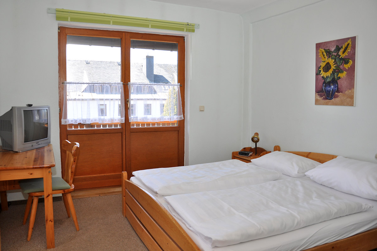 In unserer familiengeführten Pension erwarten Sie 2 Doppelzimmer und 2 große Komfortzimmer für bis zu 4 Personen und laden zum gemütlichen Verweilen ein. Einzelzimmer sind auf Anfrage möglich. Alle Zimmer haben einen Balkon und sind mit TV und Radiowecker ausgestattet. Jedes Zimmer verfügt über ein eigenes Bad mit Dusche und WC. Kostenfreie Parkplätze und W-LAN sorgen für ihren zusätzlichen Komfort.