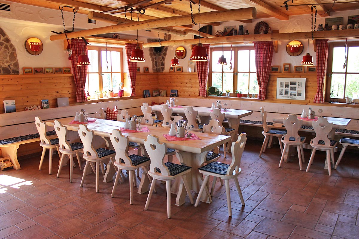 Die Neue Gehlberger Hütte hält in der Gaststube ca. 30 Plätze und auf der Terrasse ca. 40 Plätze für Dein Verweilen bereit.