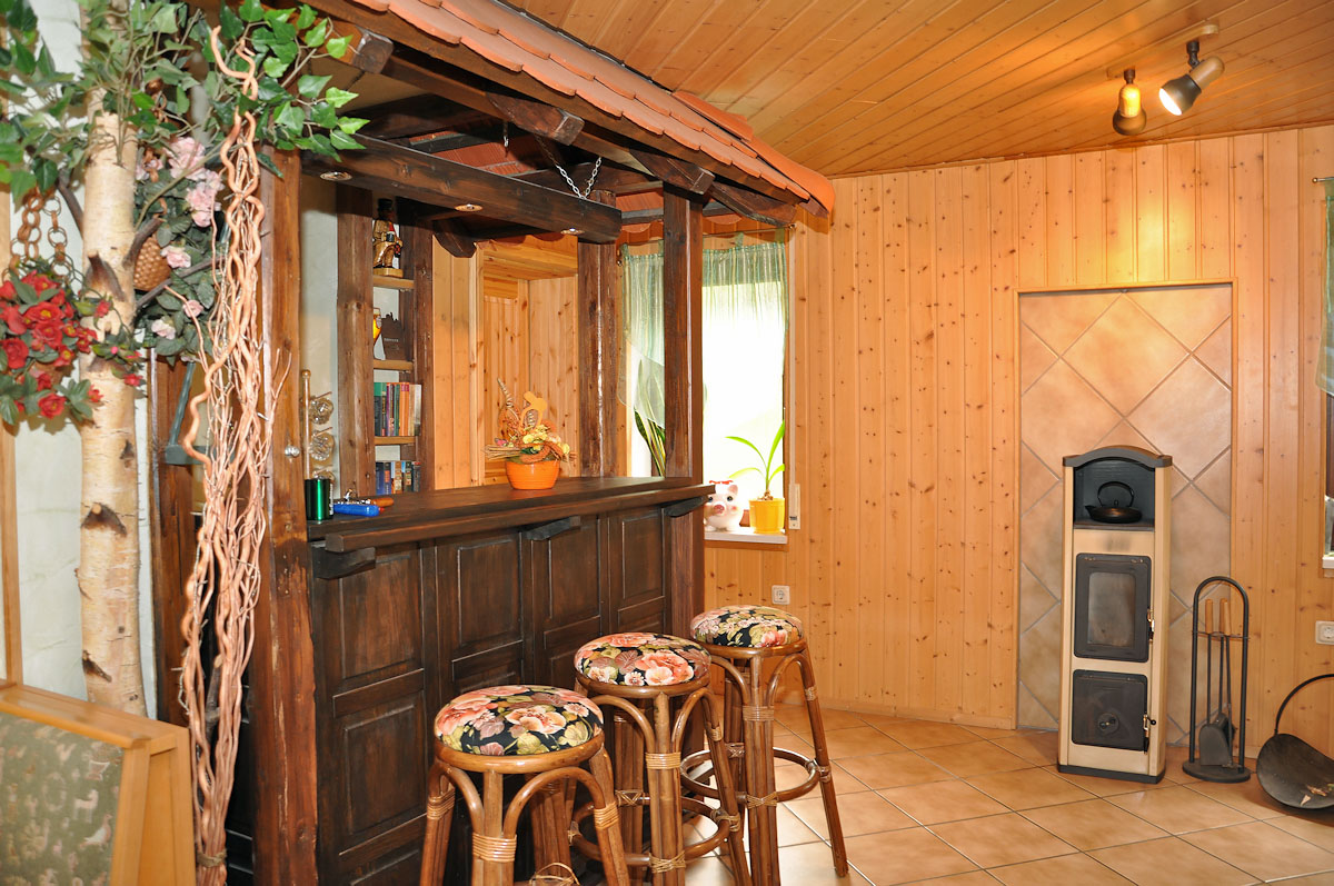Zur Ausstattung gehören auch: Hauseigene Parkplätze, großer Garten, überdachte Sitz- und Grillecke, Lagerfeuer, Liegewiese, Tourist Info, Hausbar.
