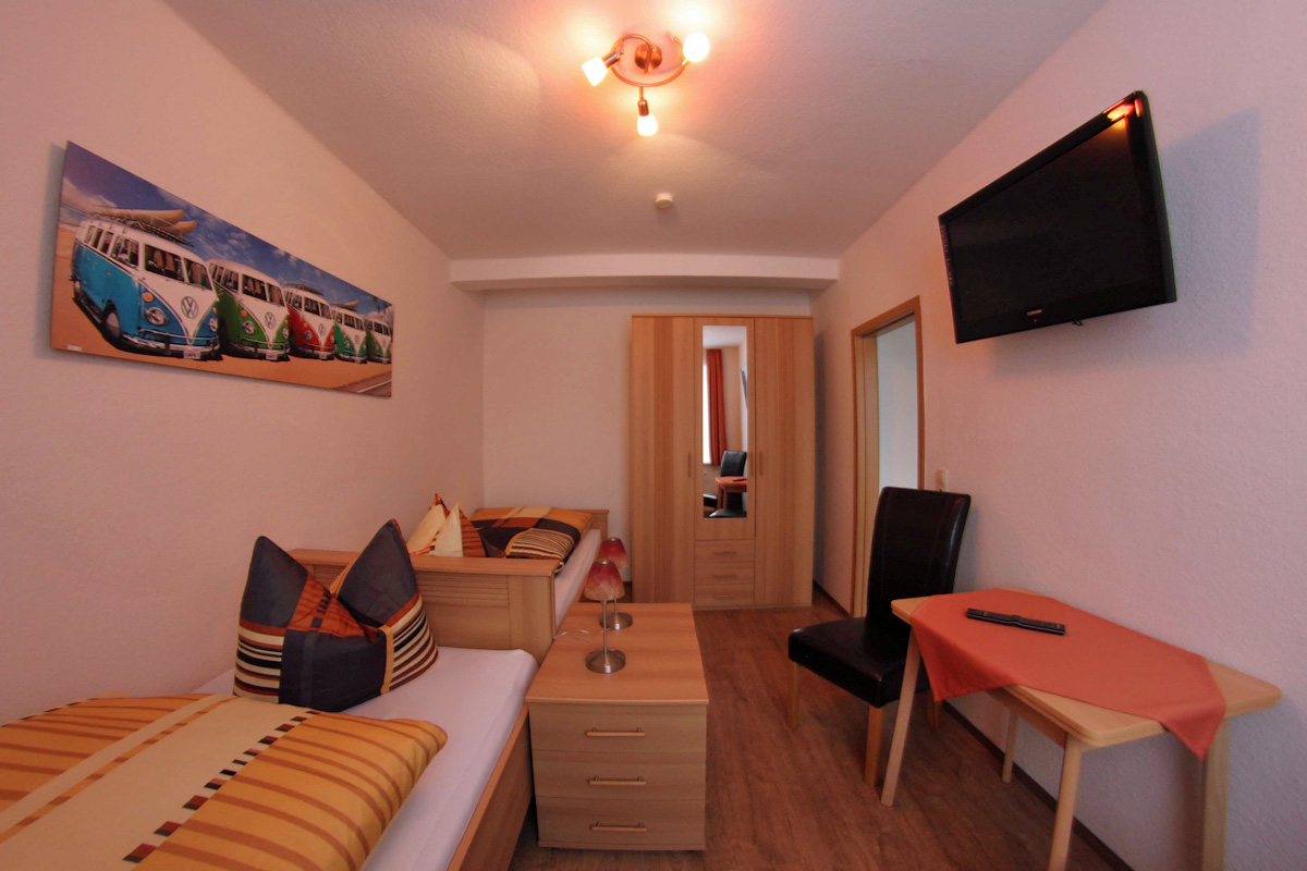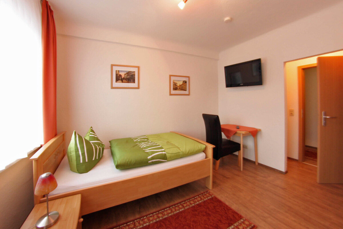 Wir verfügen über 6 Einzel- und 3 Doppelzimmer. Unsere Zimmer sind modern und komfortabel eingerichtet mit Bad (Dusche/WC) und HD Fernseher (davon 3 EZ im EG mit Miniküche). Des Weiteren ist eine Gemeinschaftsküche mit Elektroherd, Mikrowelle, Kühlschrank, Wasserkocher, Toaster, Kaffeemaschine sowie Geschirr vorhanden. Die Nutzung der Küche ist im Preis enthalten.