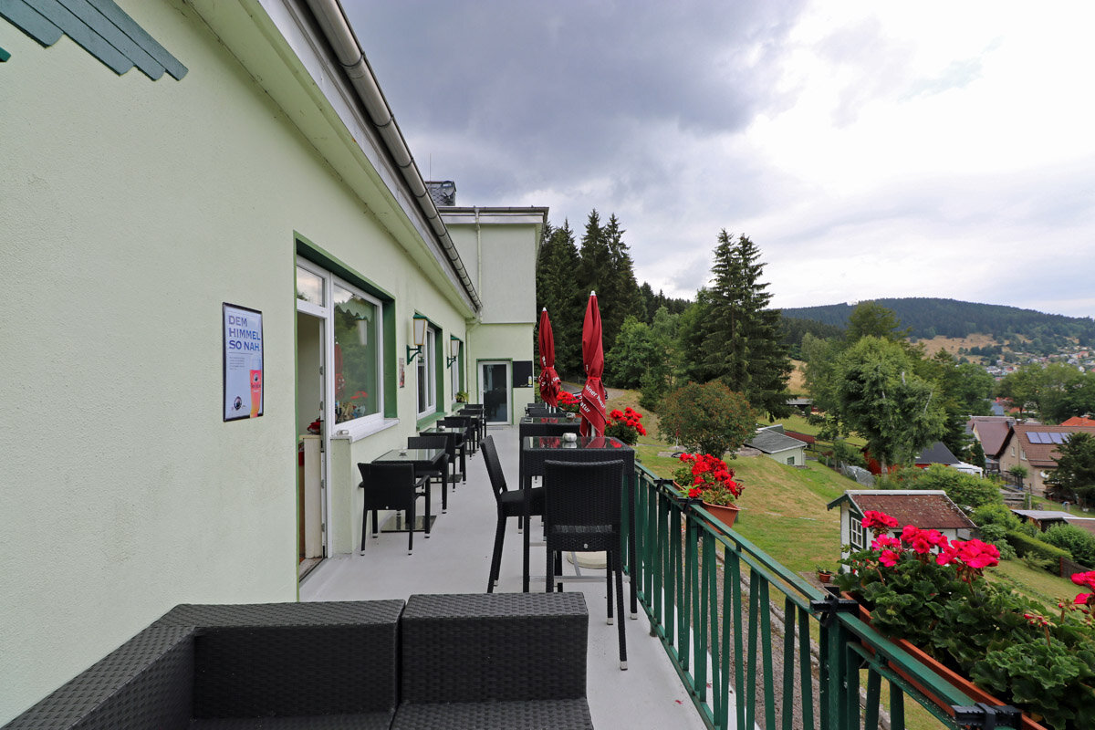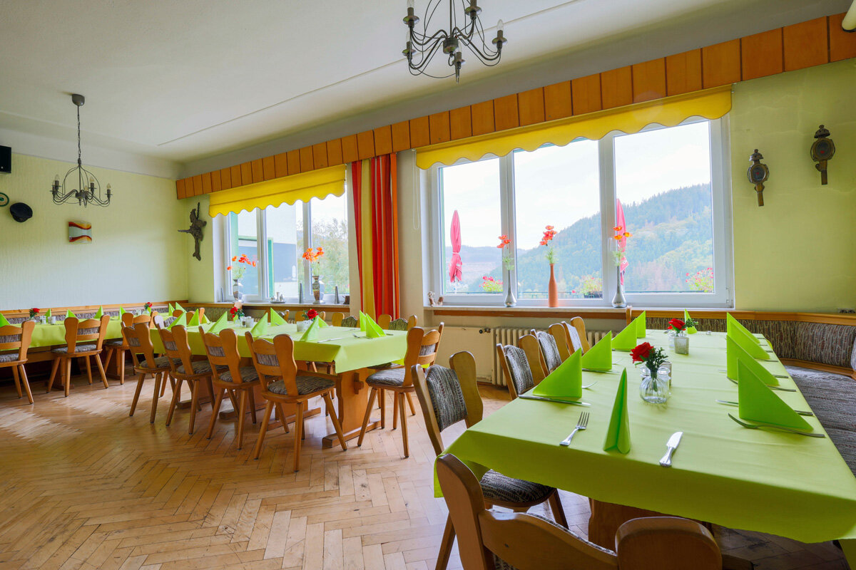 Unser Hauptgebäude hält "Leib und Seele" zusammen, denn hier wird gegessen und in fröhlicher Runde zusammen gesessen. Hier trifft man sich, hier kann man beim Frühstück ins Tal blicken und den Tag auf sich zukommen lassen.