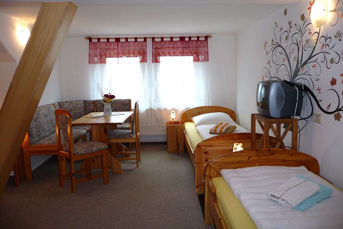 Wir bieten Ihnen 2 Ferienwohnungen und 4 Pensionszimmer, die auch miteinander kombiniert werden können. Alle Zimmer verfügen über stabile Aussenrollos.