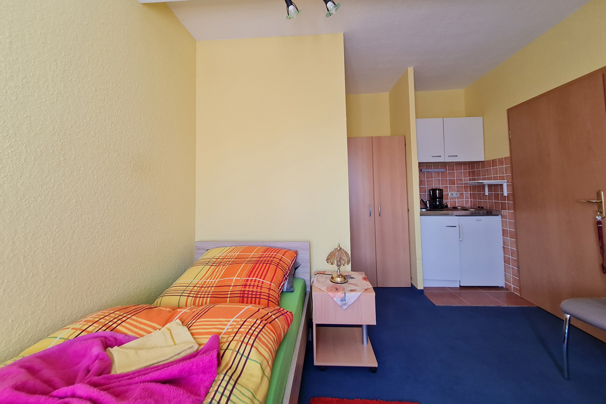 Wir verfügen über: 3 Doppelzimmer, 9 Einzelzimmer sowie 1 Ferienwohnung.