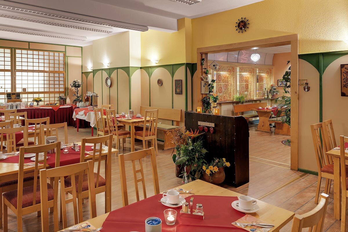 Das Restaurant ist nur zum Frühstück geöffnet. In unmittelbarer Nachbarschaft befinden sich mehrere Restaurants, die ganzjährig geöffnet sind. Für die Zubuchung von Halbpension empfehlen wir unser Haupthaus, das "Schlossberghotel".