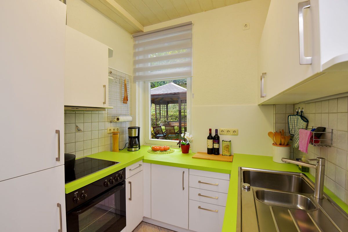 In der neben dem Frühstücksraum befindlichen Küche können Sie sich Tee und Kaffee kochen. Den dort vorhandenen Kühlschrank können Sie mitnutzen. Auf dem kleinen Hof hinter dem Haus gibt es einen kleinen Pavillon, wo Sie sich auch aufhalten können (z. B. auch zum Rauchen).