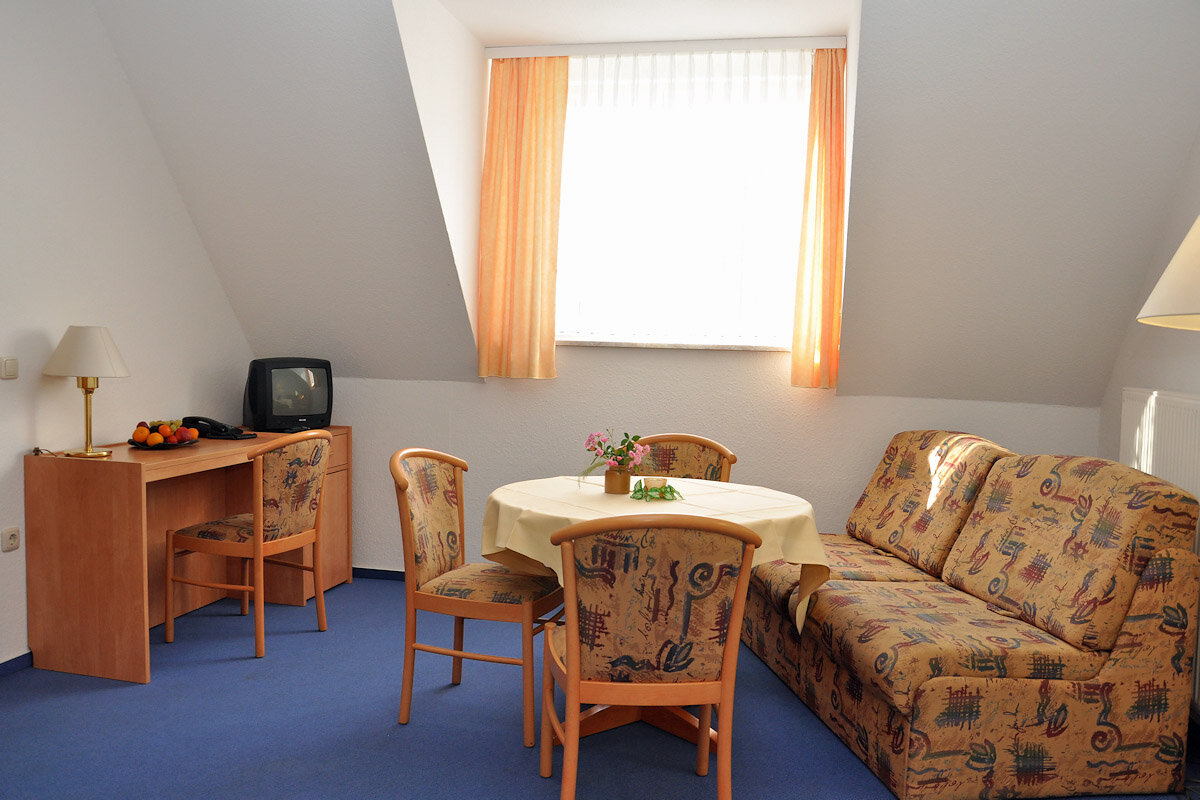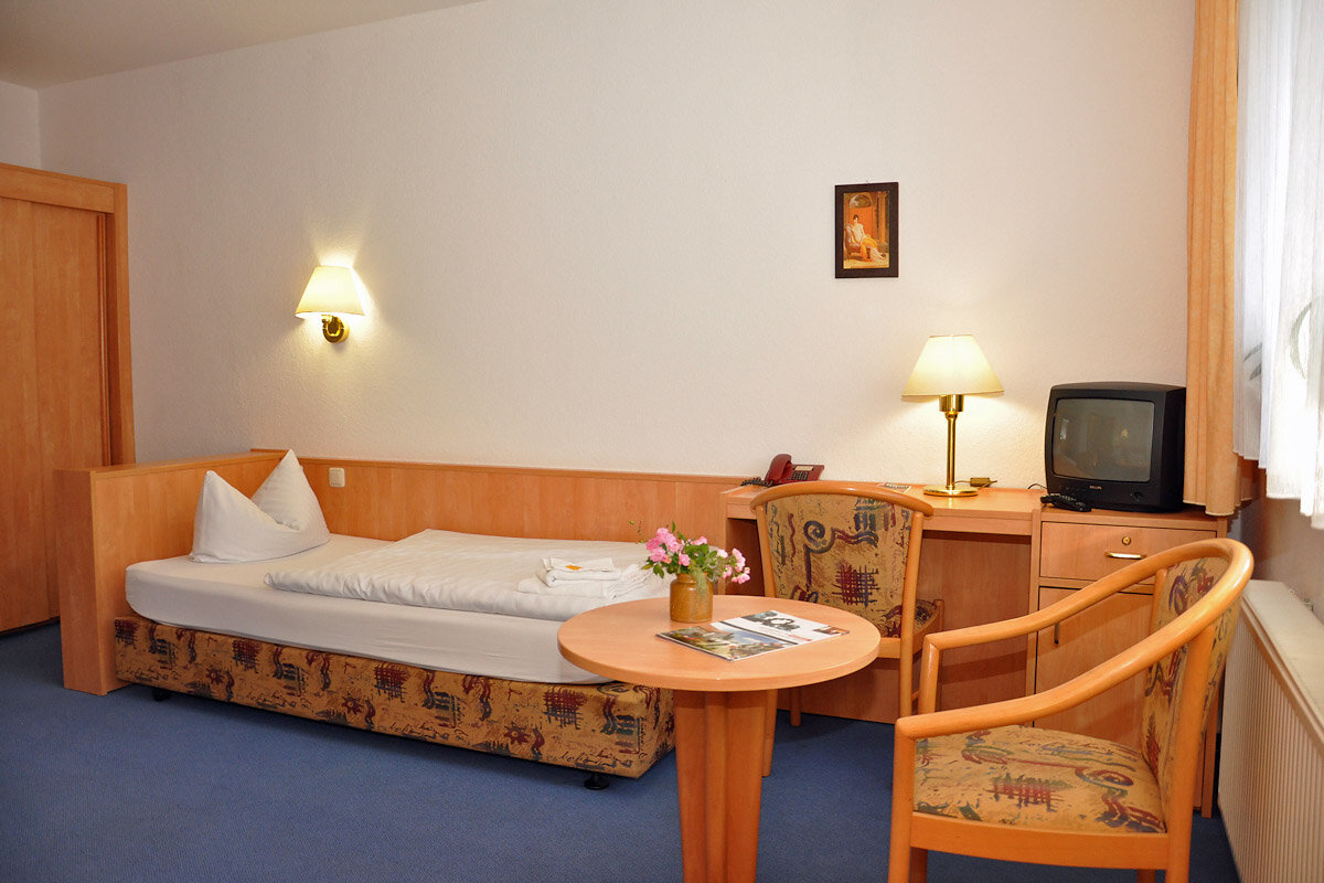 Im historischen Ambiente bieten wir Ihnen gemütlich eingerichtete Einzel- und Doppelzimmer, sowie ein behindertenfreundliches Zimmer mit Bad. Aufbettungen sind auf Anfrage möglich. Weiterhin stehen Ihnen zwei Ferienwohnungen bei uns zur Verfügung.