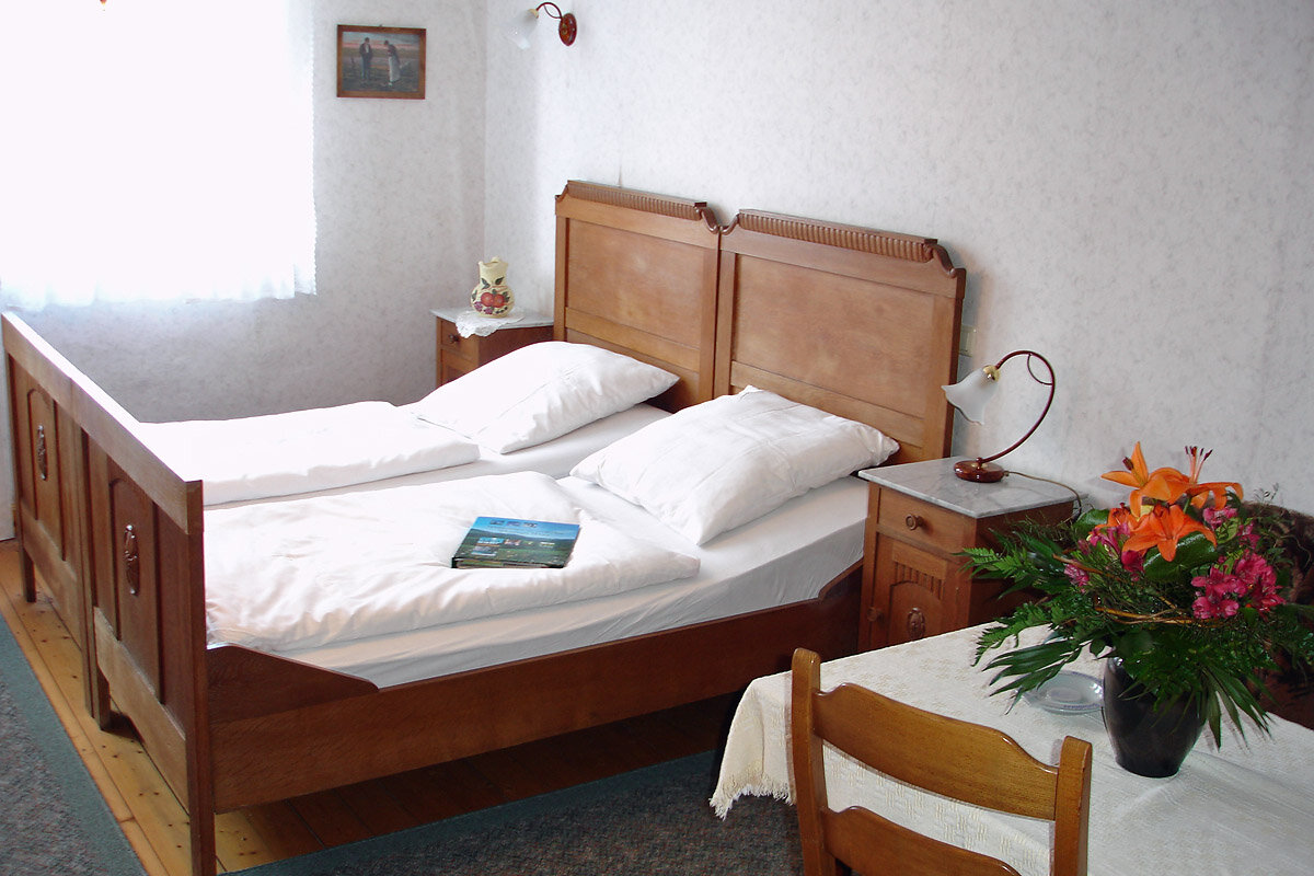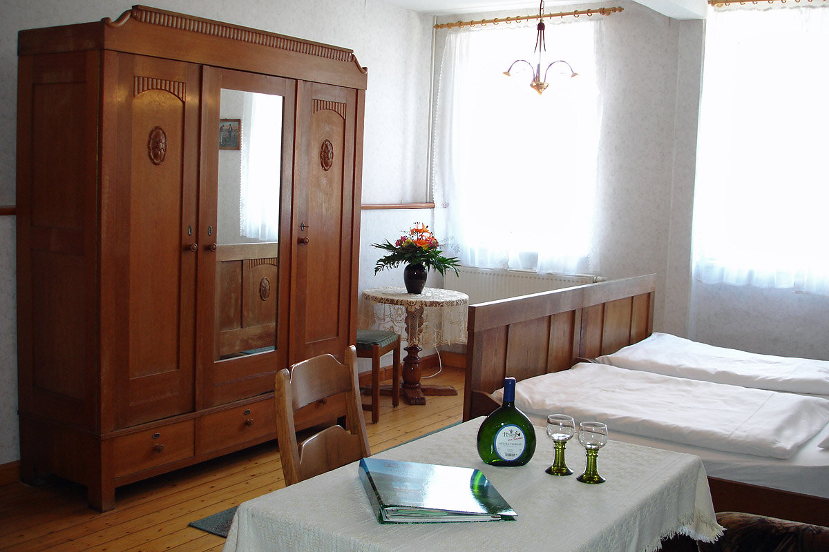 Die Einrichtung der 4 Doppel- und 2 Einzelzimmer wurde bewusst schlicht gehalten und zum Charakter des Hauses passend eingerichtet. Zur Ausstattung gehören das Bett, ein Kleiderschrank, Sitzgelegenheiten mit Tisch, TV aus Wunsch sowie Dusche/WC.
