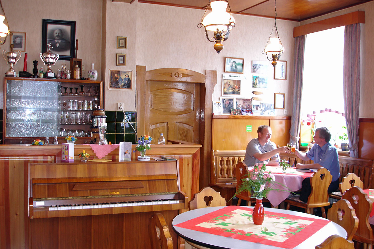 Thüringer Spezialitäten, hausgeschlachtete Wurst und selbst gemachten Käse + Butter können Sie in unserem Gasthof genießen. Für Feierlichkeiten aller Art steht Ihnen auch unser Saal mit Bühne zur Verfügung. Auf diese Weise finden insgesamt bis zu 180 Personen bei uns Platz.