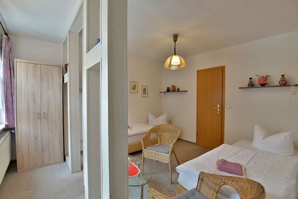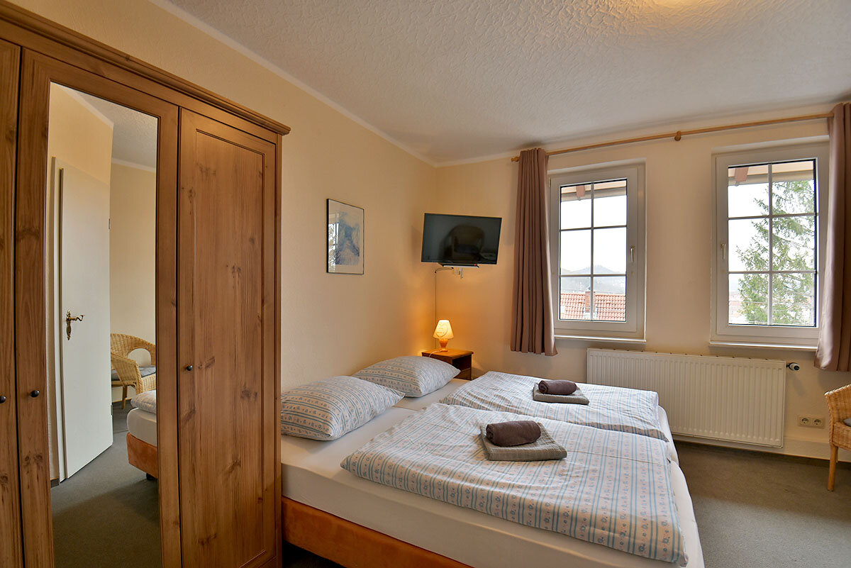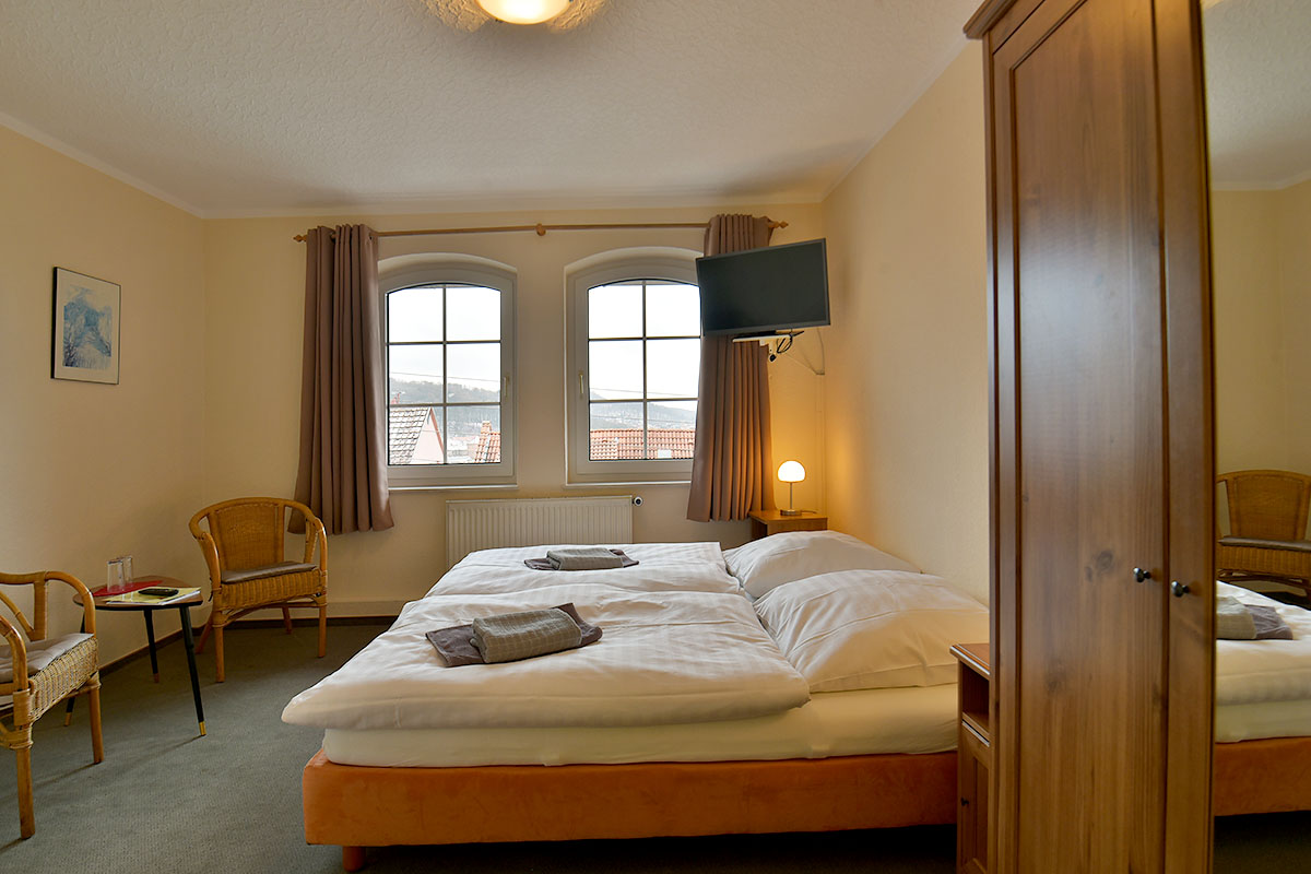 Alle Einzel-, Doppel- und Dreibettzimmer sind Nichtraucherzimmer und verfügen über Dusche, WC und Sat-TV. Ein Dreibettzimmer ist mit Badewanne ausgestattet.