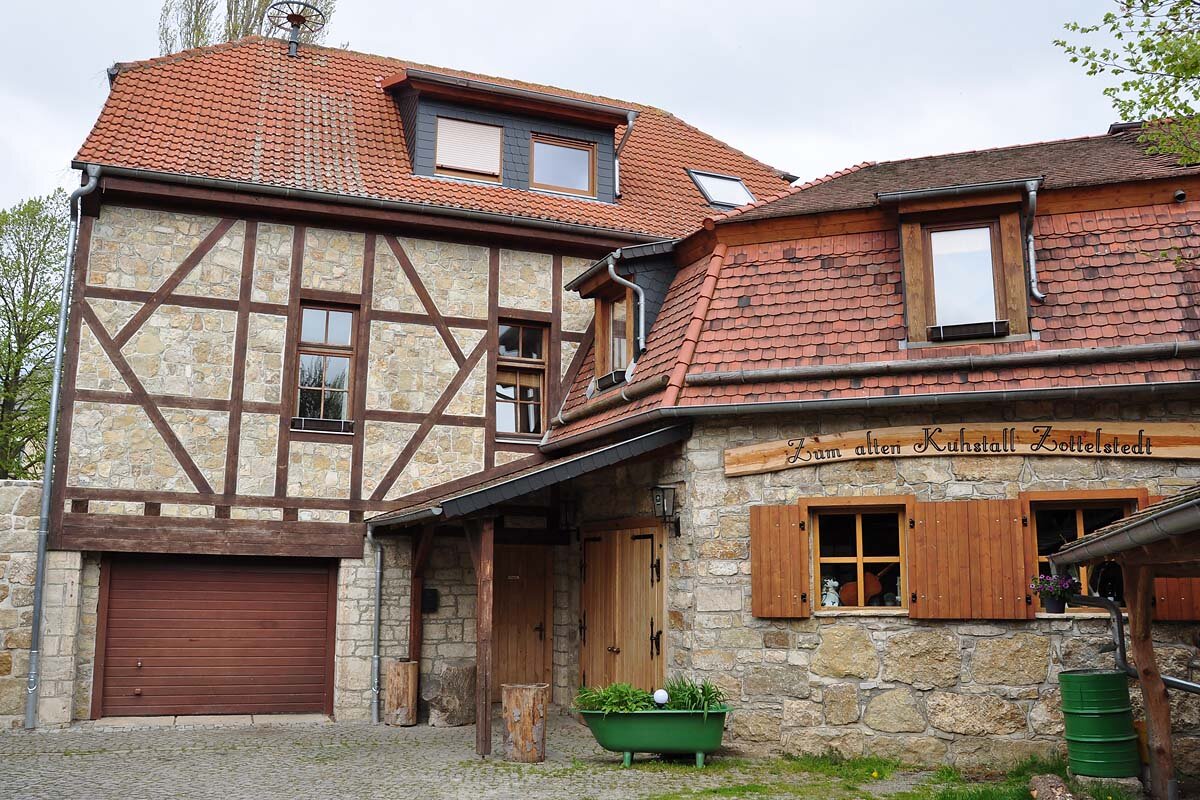 Unweit von Apolda, im Ortsteil Zottelstedt, befindet sich in ruhiger Lage die Pension "Zum alten Kuhstall". Umgeben von historischen Gemäuern bieten wir hier gemütliche Gästezimmer sowie Räumlichkeiten für Veranstaltungen.