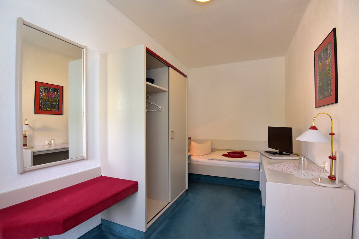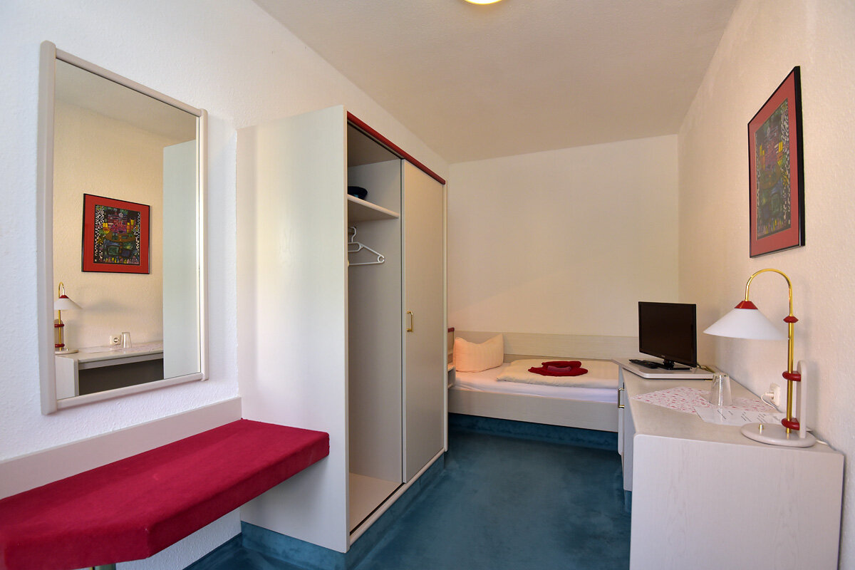 Unsere Zimmer sind modern und liebevoll eingerichtet. Zu unserem Ausstattungsstandard gehören Fernseher, Kühlschrank und Telefon. Wir haben Einzel- und Doppelzimmer mit Dusche/WC, in ruhiger Lage und in unmittelbarer Stadtnähe.