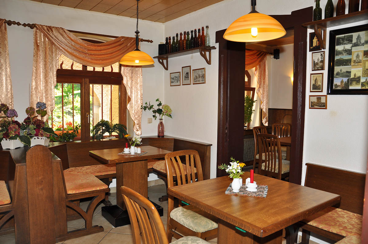 In unserer Gaststätte (30 Plätze, Mittwoch bis Samstag ab 17.00 Uhr geöffnet) können Sie in gemütlicher Atmosphäre die Thüringer Gastlichkeit genießen.