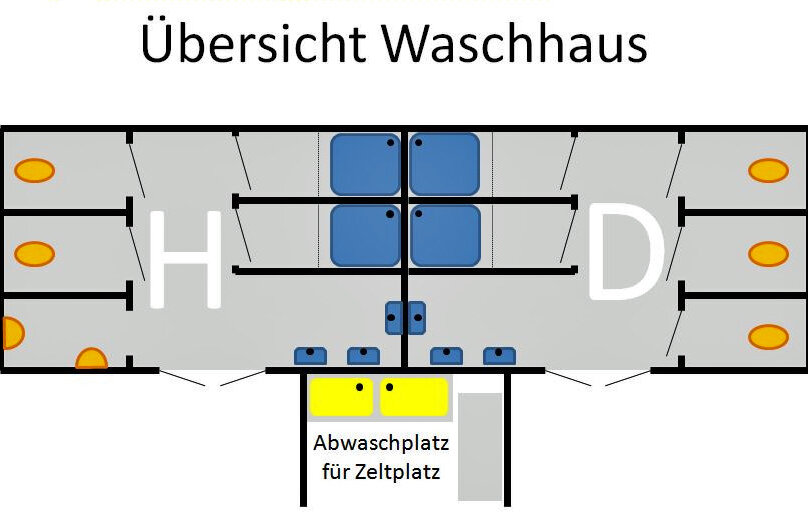 Eigens errichtet und modernisiert zur optimalen Nutzung der Wanderhütten und Zeltplätze verfügt das Waschhaus über für Damen und Herren getrennte Abteile, welche über je zwei Duschen mit Warmwasseranbindung, zwei Waschbecken und mehrere Toiletten verfügen. Vor dem Waschhaus befindet sich ein zentraler Abwaschpunkt für Küchen-equipment unserer Zeltgruppen und Gäste der Wanderhütten 2+3.
