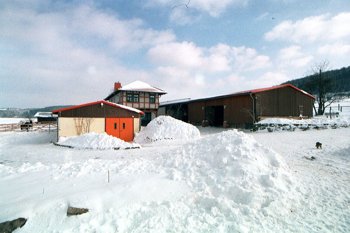 Unser Hof mit Pferdeställen, Kaninchenbox, Scheune und Grillplatz ist Treffpunkt für unsere Gäste und Tierfreunde.