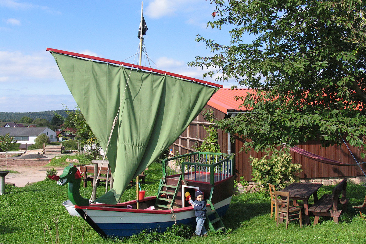 Die Kinder können den ganzen Tag im Heu und in der Scheune spielen, die Tiere im Stall beobachten, oder sich auf der Wiese austoben.