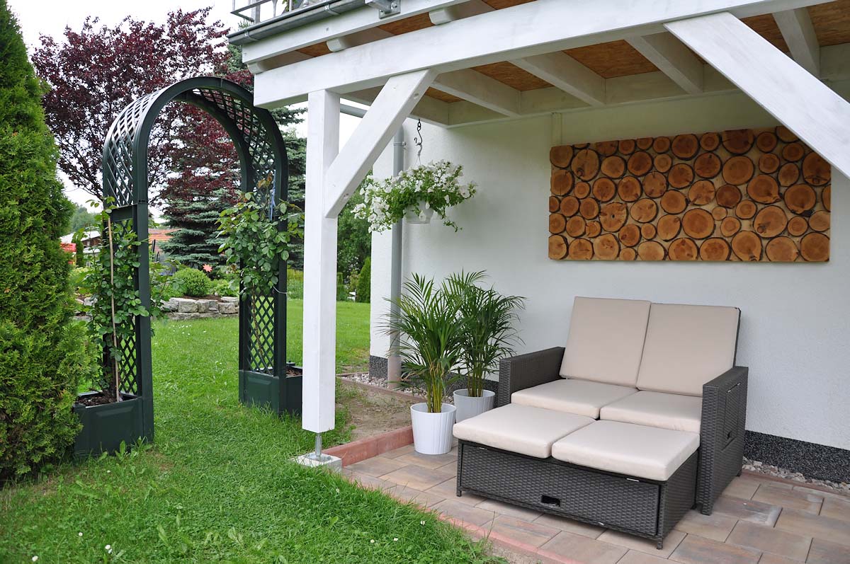 Unser Garten bietet mit ca. 1.800 qm genügend Freiraum und Ruhe für die ganze Familie, genießen Sie die eingebauten Ruheinseln oder schauen Ihrem Nachwuchs beim Spielen auf dem hauseigenen Spielplatz zu.