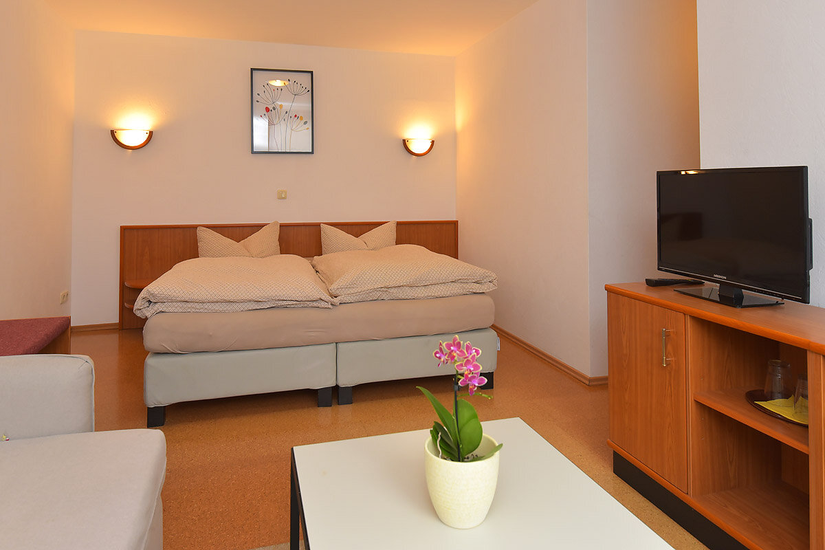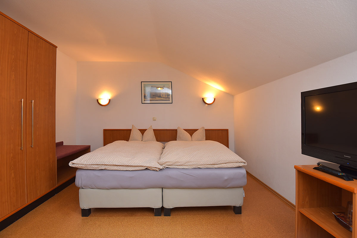 So stehen Ihnen 1 Suite, 3 Doppel- und 3 Einzelzimmer zur Verfügung. Aufbettungen sind auf Anfrage natürlich auch möglich. Alle Zimmer sind mit Dusche/WC, Kabel-TV und Telefon ausgestattet.