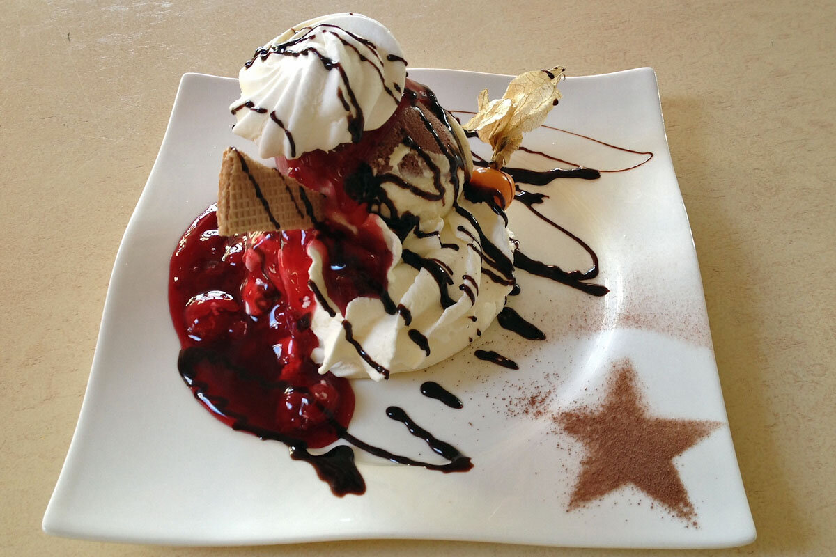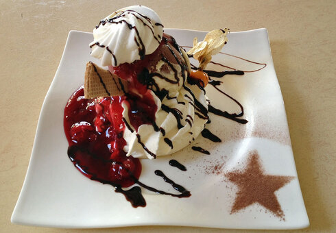 Der Gast kann neben 10 Stammeissorten, wie z.B. Erdbeer- Himbeer-, Vanille-, Schoko-, Straciatella-Eis auch immer wieder vollkommen neue Kreationen probieren. So variieren Sorten wie z.B. Ananaseis, Holunderblüteneis, Proseccoeis, Gurkeneis, Orangen-Basilikumeis, Zimteis. Probieren Sie einfach eine der Sorten und lassen sich geschmacklich überraschen. Wer weiß - vielleicht finden Sie so Ihr ganz neues Lieblingseis!