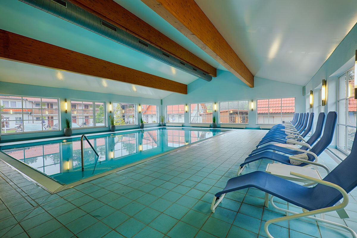 Unser Hotel verfügt auch über ein Hallenbad mit Sauna, Biosauna, Dampfbad und Massagebereich.