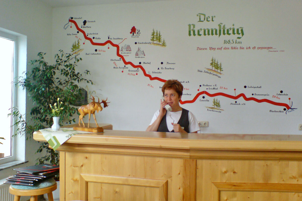 Bei uns verbringen Sie Ihren Urlaub in einer einzigartigen Lage, mitten im Thüringer Wald, direkt am berühmten Rennsteig, 720 m über dem Meeresspiegel.