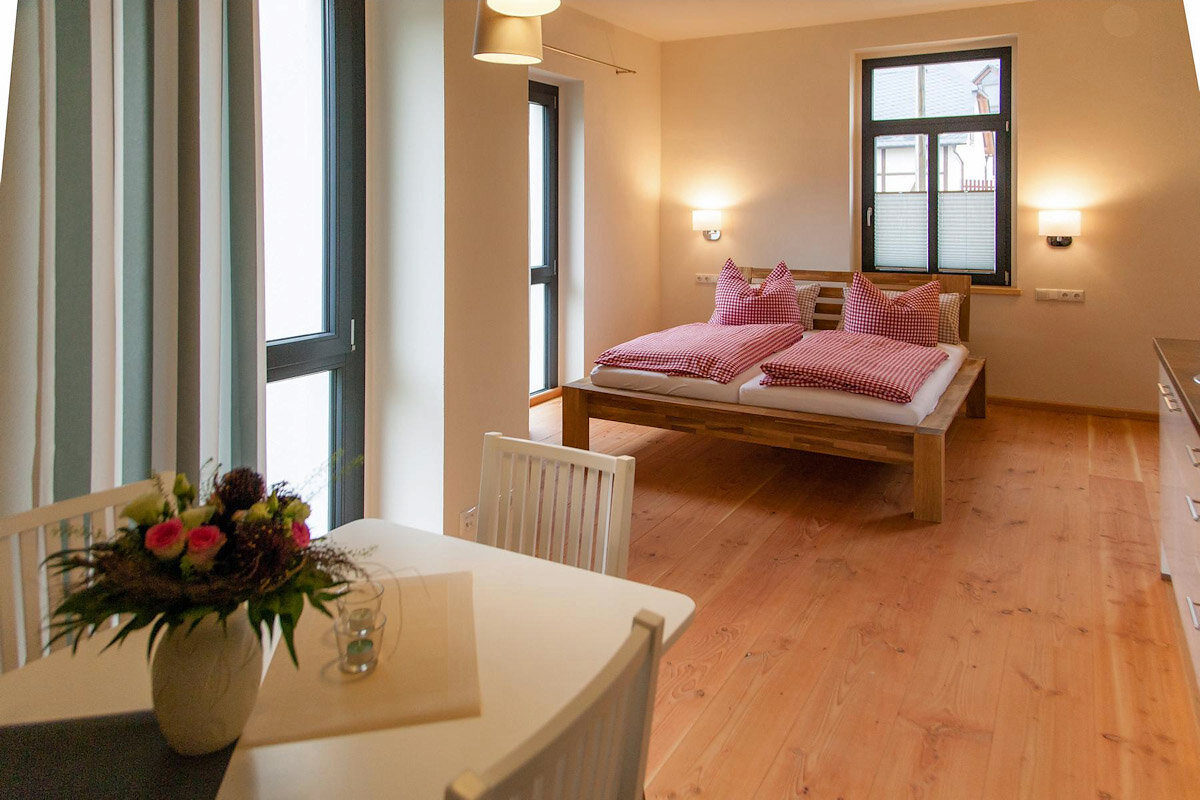 Insgesamt 10 individuell gestaltete Appartements erwarten Sie. Zwei Appartements sind barrierefrei zugänglich. Eines der Klassenzimmer ist ein Veranstaltungs- und Meetingraum für bis zu 40 Personen mit Terrasse. (30 Mbit Internet Zugang, 2.4/5 GHz AC WLAN oder Gigabit kabelgebunden, Smart-TV)