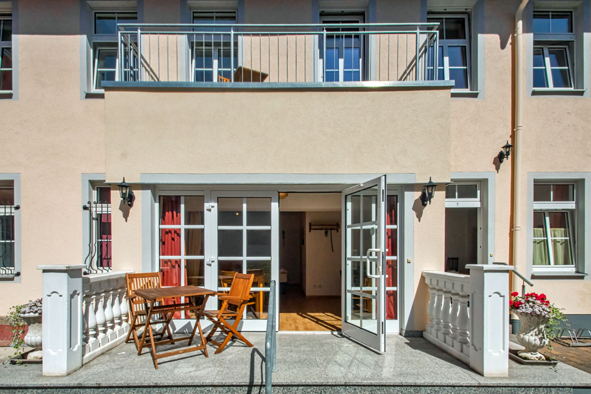 Die Altstadtperle ist sehr zentral und trotzdem in ruhiger Lage, nur einige Meter entfernt befinden sich ein wunderschöner Park, der zum Entenfüttern einlädt und ein großer Spielplatz für Kinder. In unserem grün bepflanzten Innenhof und direkt am Flussufer der Gera können Sie den Alltag hinter sich lassen und nach einer Stadtführung oder einem Shoppingausflug entspannen.