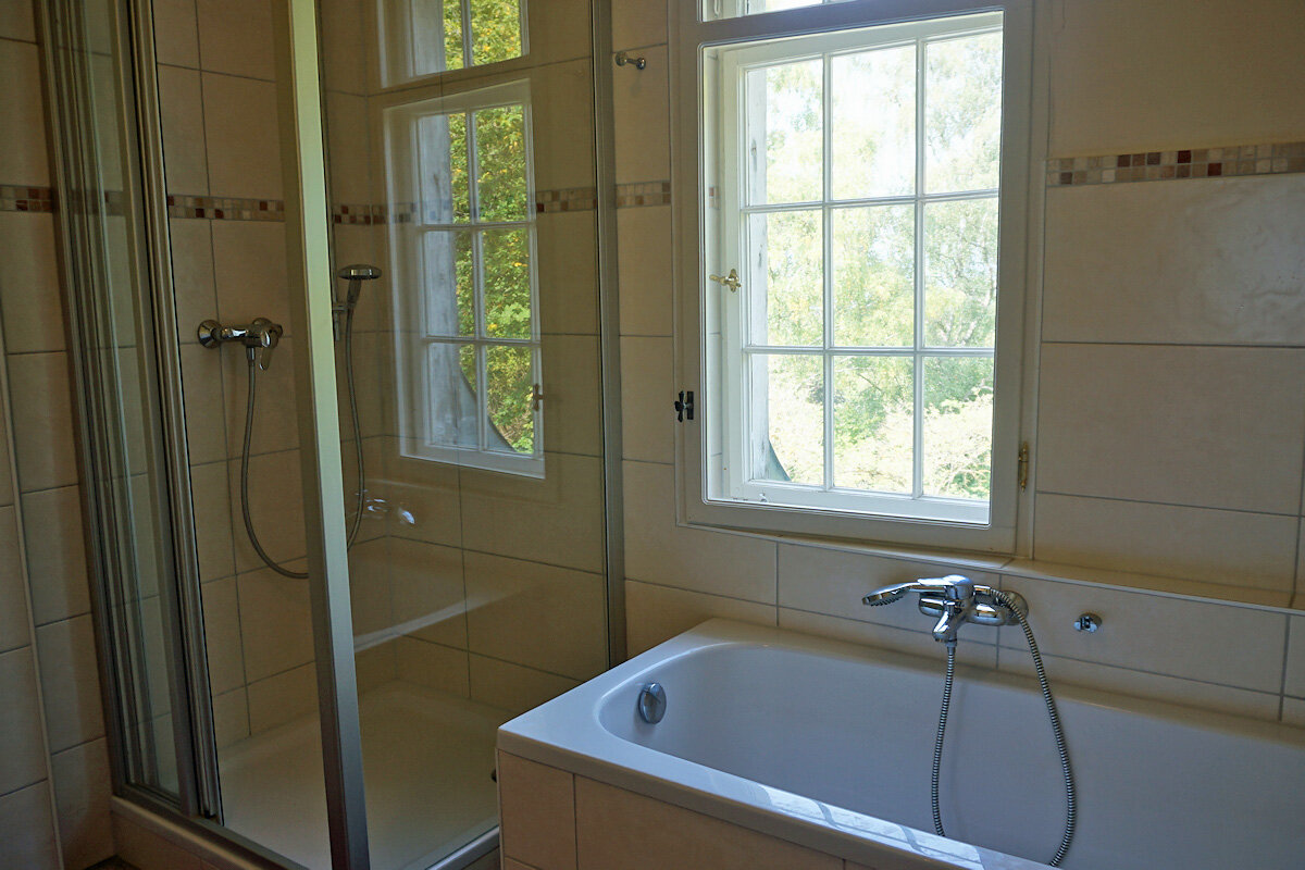 Die Villa liegt etwas erhöht hinter dem Schloss mit Blick auf den Park. Für Kinder ist es schön, dass die Stallungen mit all den Tieren nur vierzig Meter entfernt sind. Öffentliche Straßen mit Verkehr gibt es im Umkreis von mehreren Kilometern nicht. Das Haus bietet Schlafmöglichkeiten für 4 Erwachsene und 3 Kinder, kann aber auf das Doppelte aufgebettet werden.