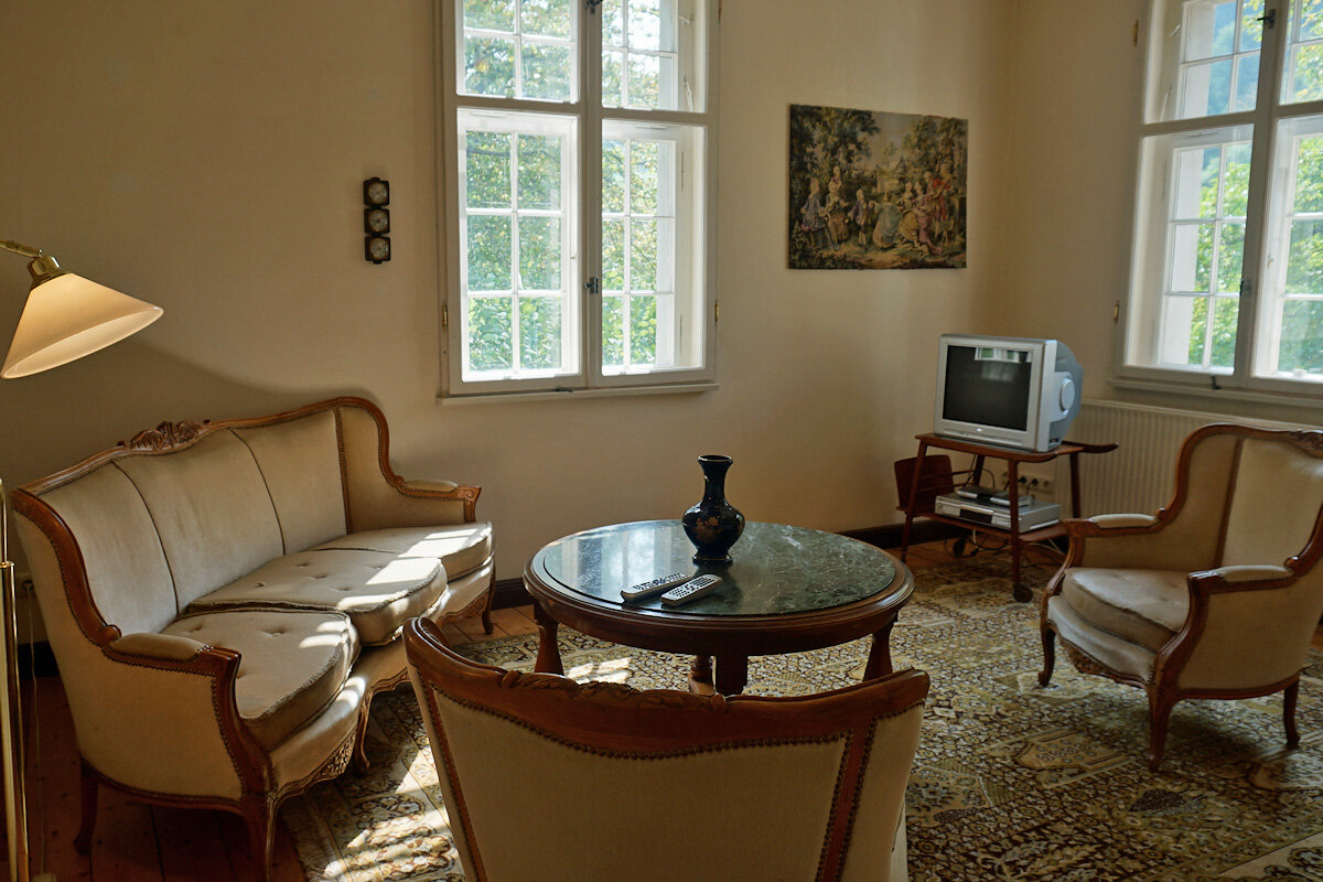 Die Behlert-Villa steht jetzt als Ferienhaus für unsere Gäste zur Verfügung. Besonders geeignet ist sie für Familien mit Kindern. Die finden im Haus auch ein voll ausgestattetes Spielzimmer. Die Villa ist im Übrigen wie ein Gutshaus im ersten Viertel des letzten Jahrhunderts eingerichtet. Technisch ist das Haus auf neuem Stand: Zentralheizung, zwei Bäder, Geschirrspüler, moderner Ceranfeld-E-Herd, Tiefkühltruhe, Waschmaschine, Föhn, Bügeleisen, Fernseher mit CD-Player, Telefon- und Internetanschluss.