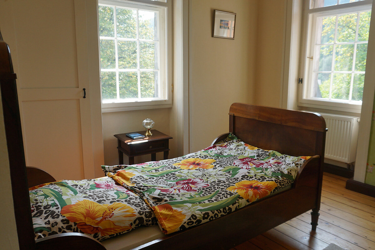 Im Mansardengeschoss: Großes Elternschlafzimmer mit Himmelbett, Bad, zwei Einzelschlafzimmer, ein großes Kinderschlafzimmer mit Etagen- oder auf Wunsch Gitterbetten, Kinderspielzimmer voller Spielsachen (Kasperletheater, Stofftiere, große Holzeisenbahn, Bilderbücher, Puppen, Spiele und vielem anderen).