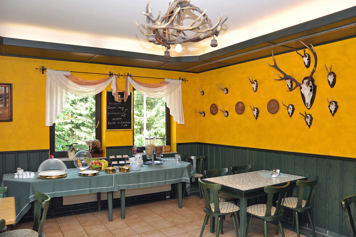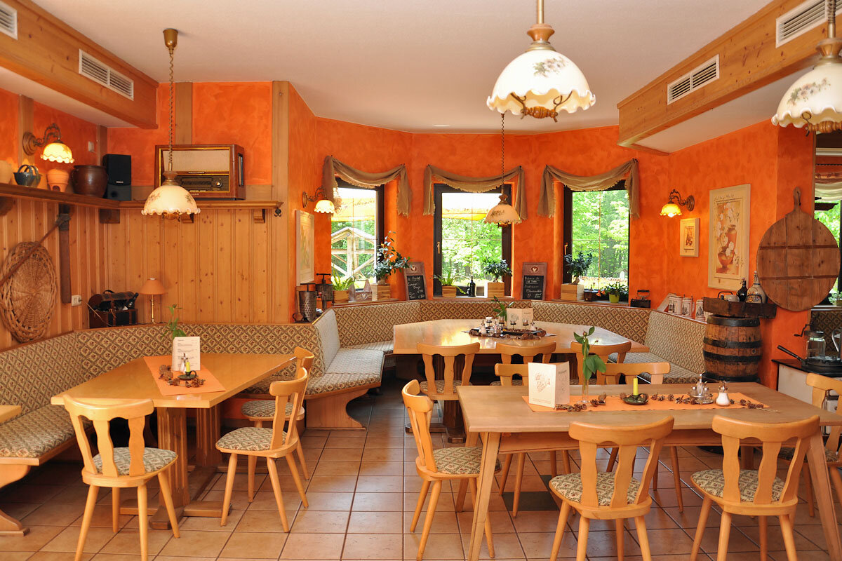 Genießen Sie in unserem urigen Gastraum (50 Plätze) sowie im Jägerzimmer (28 Plätze) die sprichwörtliche Thüringer Gastlichkeit - im Winter am Kamin und im Sommer auch im wunderschönen Biergarten (für bis zu 300 Personen). Unser Gasthaus ist täglich ab 10 Uhr geöffnet. An den Wochenenden gibt es regelmäßig Grillfeste aber auch Tanzveranstaltungen. Für Ihre Familien- und Vereinsfeier sind wir ein zuverlässiger und kompetenter Partner.