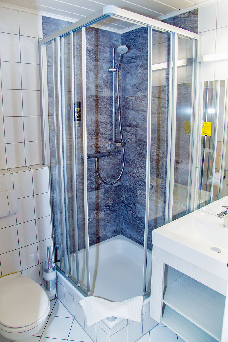 Alle Zimmer sind mit Dusche oder Bad/WC, Fön, WLAN, Flat-TV, Tablet inklusive Telefon ausgestattet.