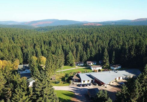Die Hotelanlage des Waldhotel "Rennsteighöhe" befindet sich auf einer Lichtung unweit von Frauenwald mitten im Wald.