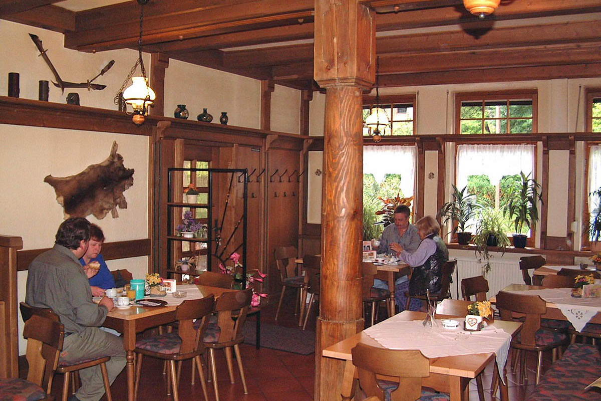 Das rustikale Restaurant, welches auch als Frühstücksraum genutzt wird, steht unseren Gästen bis in die Abendstunden (bis 21 Uhr) zur Verfügung und bietet die richtige Atmosphäre für gemütliche Stunden.