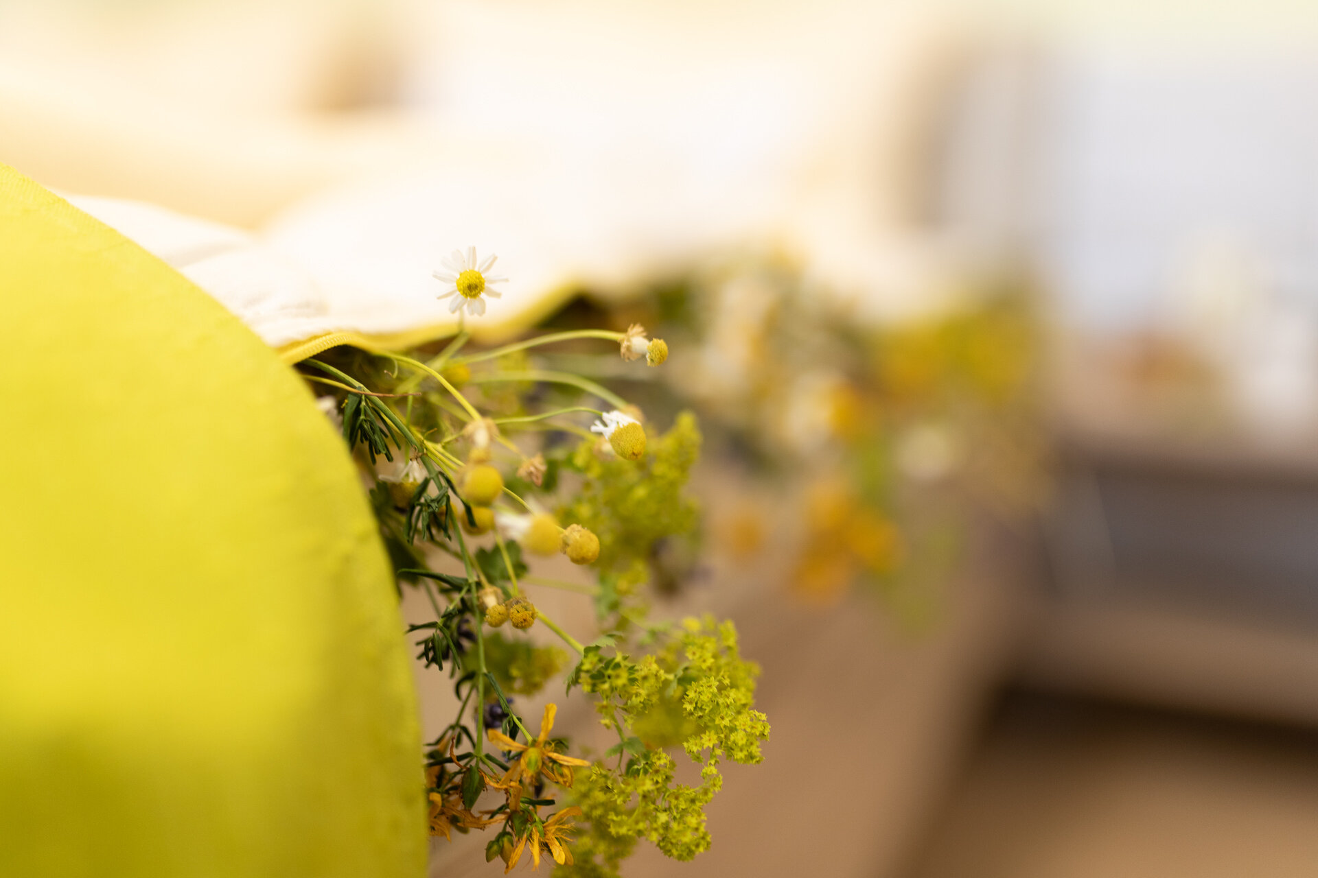 die liebevoll ausgewählt und auf die Räumlichkeiten abgestimmt sind. Als besonderes Augenmerk ist jedes Bett ausgestattet mit einem Dinkel-Schlummer-Kräuter-Kissen sowie unserer Kräuterkosmetik.