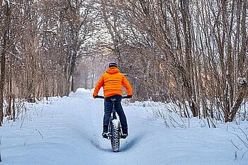 Winterspaß auf dem E-Bike? – Es gibt tatsächlich passende Modelle für das Biken im Winter. Besonders beliebt sind hierfür die sogenannten Fatbikes, die es auch als E-Fatbike-Variante gibt. Was Fatbiking im Winter auszeichnet, sind die voluminösen Reifen und der niedrige Reifendruck, wodurch Sie auch auf verschneiten und vereisten Strecken sicher fahren.