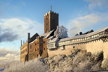 Besonders imposant im Winter: Ein Blick auf die Wartburg, die über dem Start oder Ziel der Tour in Eisenach thront.