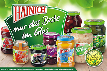 Die HAINICH Konserven GmbH vertreibt und vermarktet ihr breites Angebot an Konserven und süßen Brotaufstrichen im In- und Ausland, unsere Erzeugnisse finden nicht nur im heimischen Thüringen großen Anklang. In Deutschland sind wir in vielen Lebensmittelmärkten vertreten.