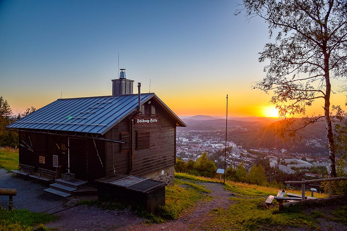 Die Döllberghütte liegt idyllisch oberhalb von Suhl im Thüringer Wald und bietet Wanderern eine gemütliche Rastmöglichkeit mit herrlichem Blick auf die Stadt und die umliegende Natur.