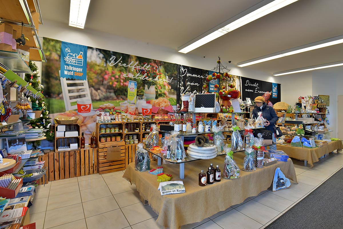 Mehr InformationenDer Thüringer Wald Shop bietet eine Vielfalt regionaler Produkte aus dem Thüringer Wald, die Sie bequem online bestellen können oder Sie besuchen uns vor Ort in Neuhaus am Rennweg. Zum Angebot gehören u. a. Präsentkorb voller Thüringer Köstlichkeiten, Geschenkideen für Thüringen-Liebhaber, Wurstspezialitäten, Nougat, Honig, Biere von regionalen Brauereien, traditionelle Handwerkskunst, Naturkosmetik ...