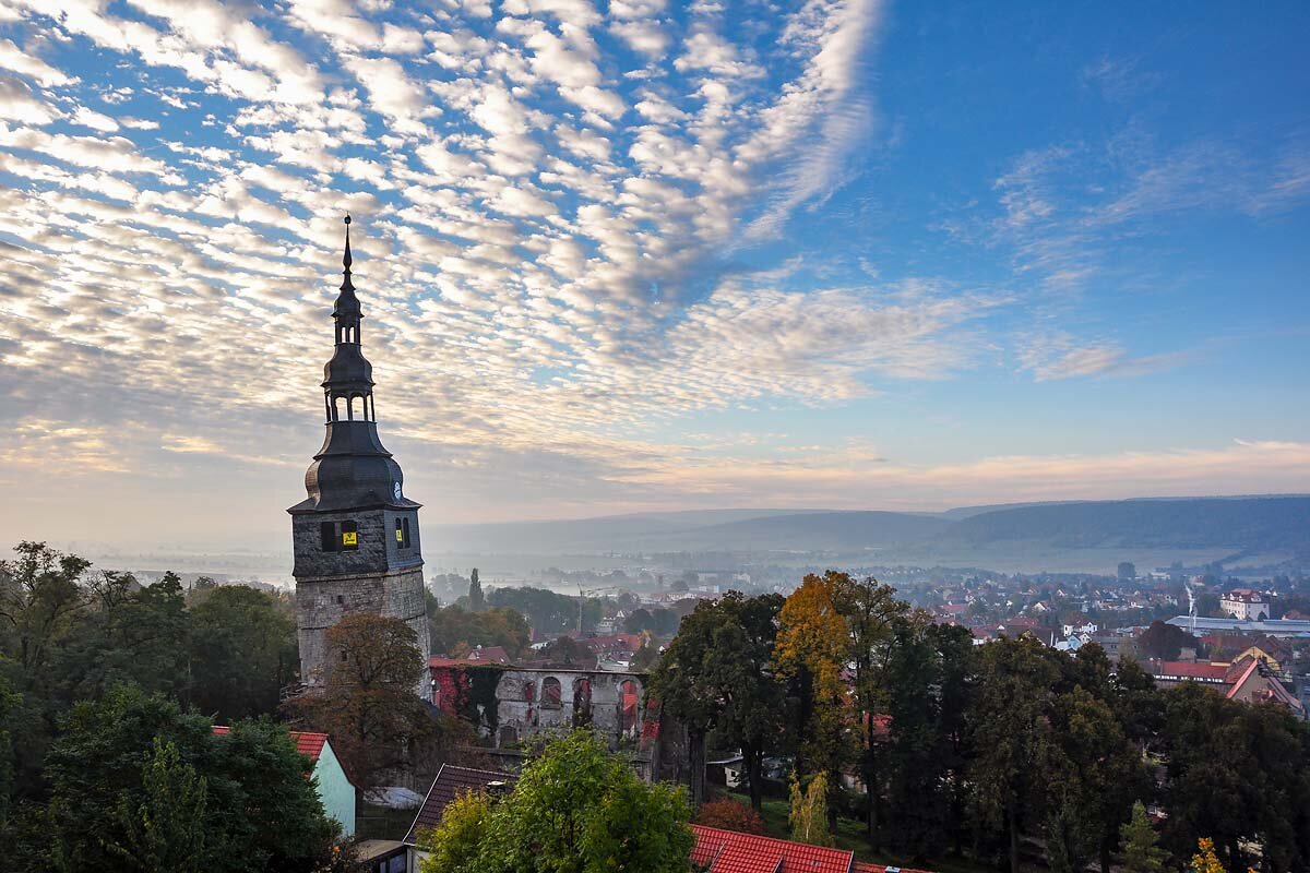 Südöstlich vom Hausmannsturm erhebt sich als markantes Wahrzeichen die Ruine der Oberkirche.