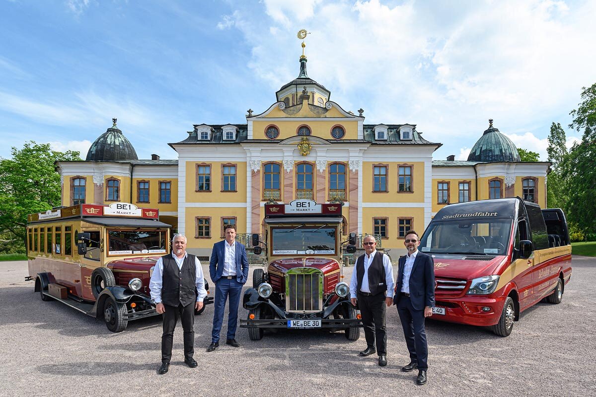 Am Schloss Belvedere werden Sie von uns geführt. Hier wird die Chronologie aller wichtigen Weimarer Epochen anschaulich zusammengefasst. Zusätzlich gibt es in unseren historischen Bussen einen Spielfilm zu sehen, welcher eigens für die Tour produziert wurde. Im Panoramcabriobus erwartet Sie ein kurzweiliger und informativer Audiodialog von Anke und Christoph. In unserem neuen Panoramacabriobus fahren Sie bei schönem Wetter sogar offen durch Weimar und zum Schloss Belvedere.