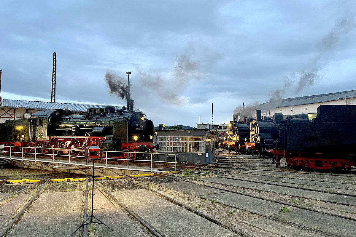 Außerdem ist das einstige Bw ein gern angesteuertes Ziel von Sonderfahrten oder Dampflokomotiven, die auf der Durchreise ihre Betriebsstoffe in Arnstadt ergänzen.