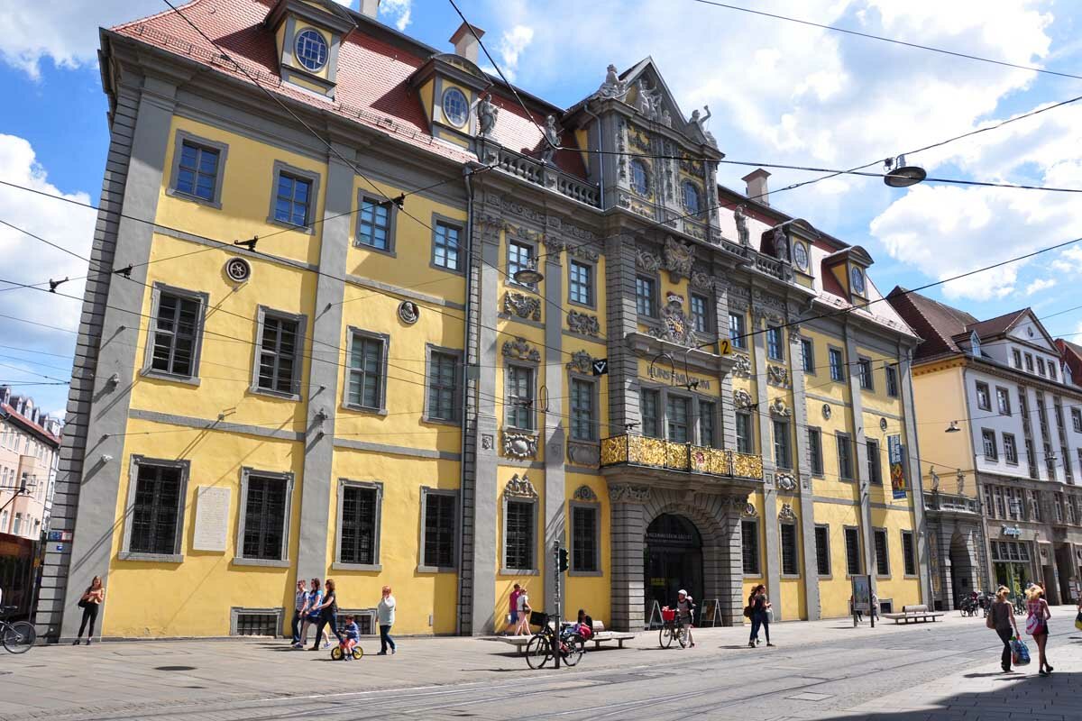 Leuchtend gelb präsentiert sich das Angermuseum in Erfurt, das 1705 als kurmainzischer Pack- und Waagehof zur Belebung des Handels errichtet wurde. Seit mehr als 100 Jahren sind hier eine bedeutende Mittelaltersammlung, Landschaftsmalerei des 19. und 20. sowie Fayencen des 18. Jahrhunderts untergebracht.