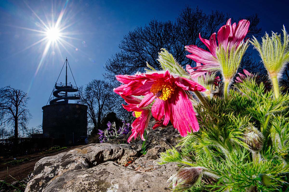 Recht ab vom Danakil führt der Frühlingsspaziergang weiter in den Rosengarten. Die eigentlichen Protagonisten warten noch auf wärmere Tag und Sonne, ganz wie es sich für eine Majestät gehört. Die Rosenblüte erlebt im Juni ihren Höhepunkt mit Farbenpracht und Duftexplosion. Bis dahin zeigt sich der für die BUGA neu gestaltete Garten von einer ganz anderen Seite: Begleitstauden sorgen für Blütenoptik, das vielgestaltige Grün ihrer Blätter inmitten von mediterranem Garten und Rosenkabinetten für gärtnerische Vielfalt. Im Liliengarten daneben ist auch der Sommer die Blütehochzeit, die Wasserspiele und der grandiose Blick über Erfurt sind die Anziehungspunkte, bis die Lilien mit edlen Blüten und kräftigen Farben ihre Charmeoffensive starten.