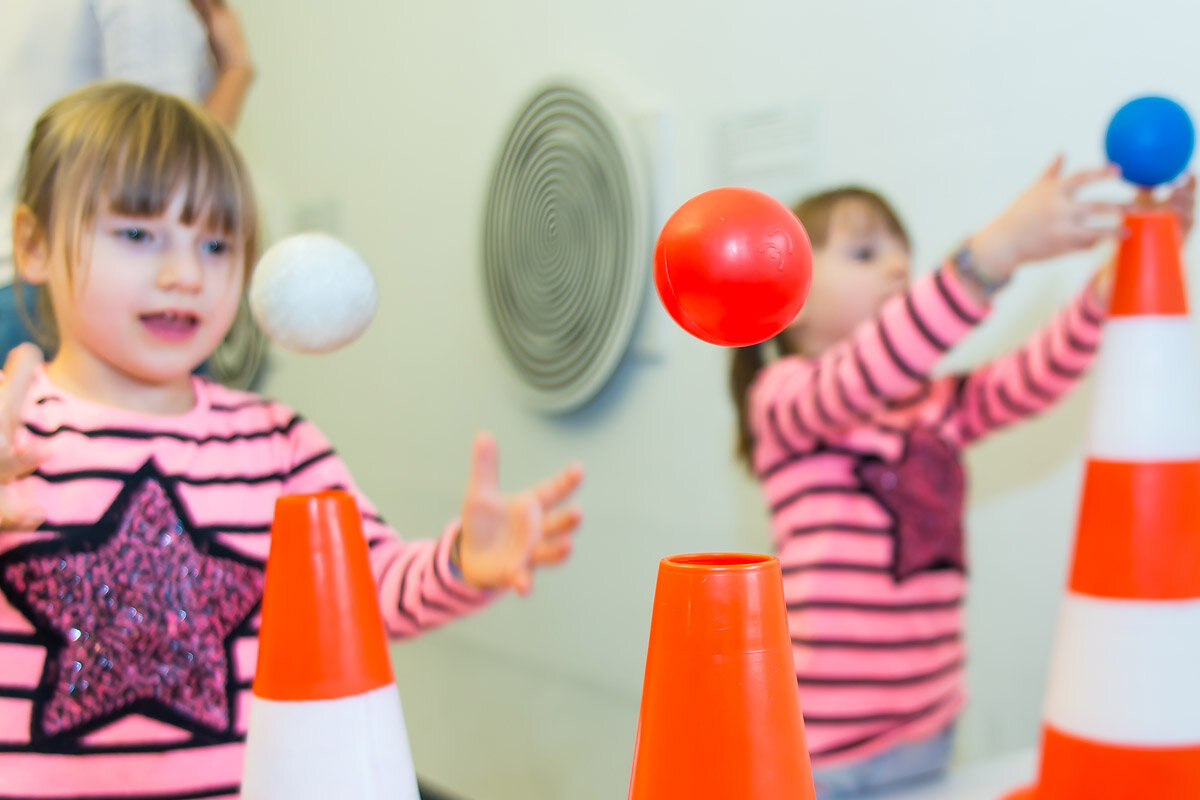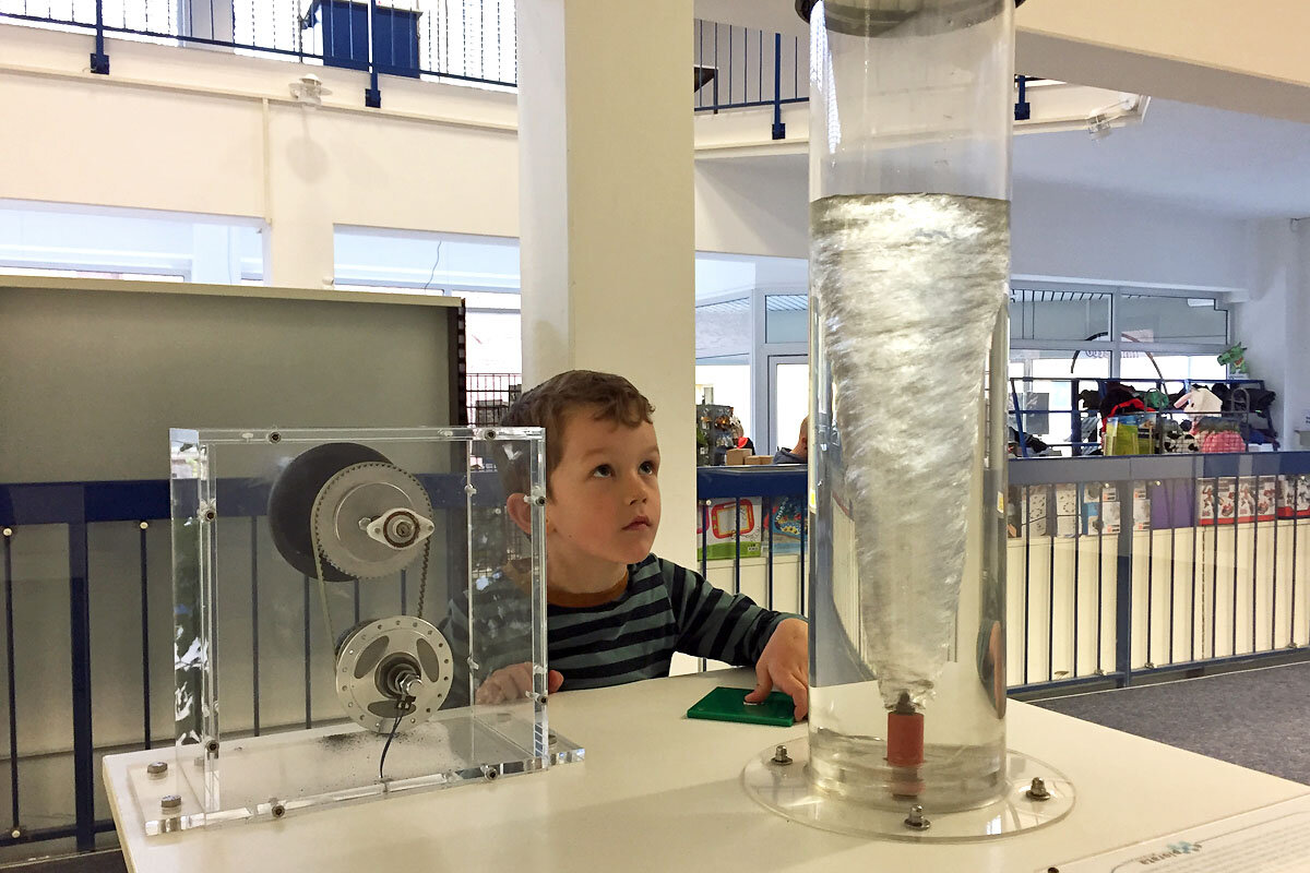 Alle Exponate rund um Physik und Naturwissenschaften warten darauf, alleine oder gemeinsam ausprobiert und ergründet zu werden.