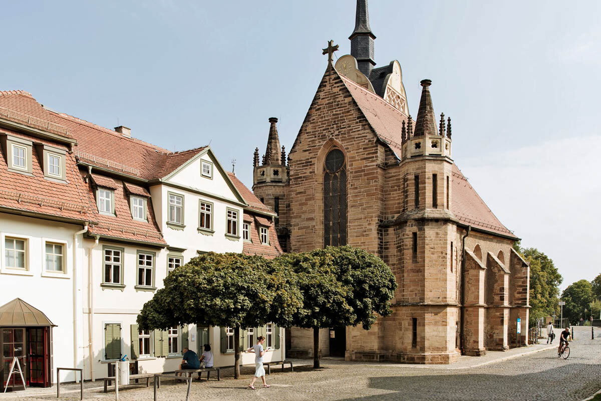 Im Schatten der Marienkirche aus dem 15. Jahrhundert mit ihrem charakteristischen Glockenturm begrenzt es die Nordseite eines der schönsten Plätze Geras, den Mohrenplatz im Stadtteil Untermhaus. Vermutlich ist das bescheidene zweigeschossige Gebäude mit seinem gewaltigen Mansarddach und der einfachen Giebelfassade zur selben Zeit entstanden wie das gegenüberliegende ehemalige fürstliche Kammergut, das Heinrich XVIII. Reuß nach einem Brand im Jahre 1728 wieder errichten ließ.